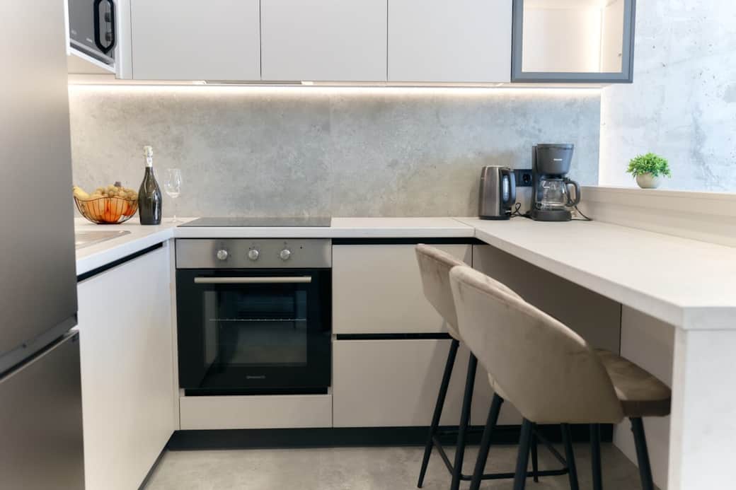 Κουζίνα, Μηχανή καφέ, Σόμπα κουζίνας, ΦΟΥΡΝΟΣ ΜΙΚΡΟΚΥΜΑΤΩΝ, Φούρνος, Ψυγείο, Προϊόντα καθαρισμού, Δίσκος ψησίματος, Καφές, Βασικά στοιχεία μαγειρικής, Τραπέζι τραπεζαρίας, Πιάτα και μαχαιροπήρουνα, Καταψύκτης, Βραστήρας ζεστού νερού, Ποτήρια κρασιού