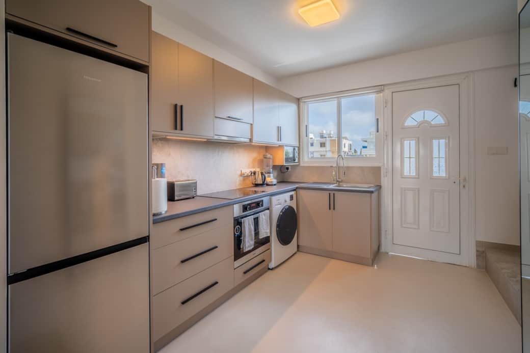 Две спальни, полностью оборудованная кухня, собственная терраса и парковка прямо перед домом.